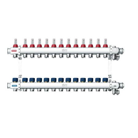 Rozdělovač pro podlahové vytápění 1" Duro System R-13, sekce INOX