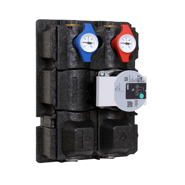 Kompaktní čerpací skupina DN 20 byla navržena pro provoz směšovacích okruhů, zajišťujících účinnost a úspory energie. Vybavena patentovanou 3dílnou izolací EPP, splňuje německé normy pro úsporu energie (GEG).Snadná instalace a skryté vedení kabelů