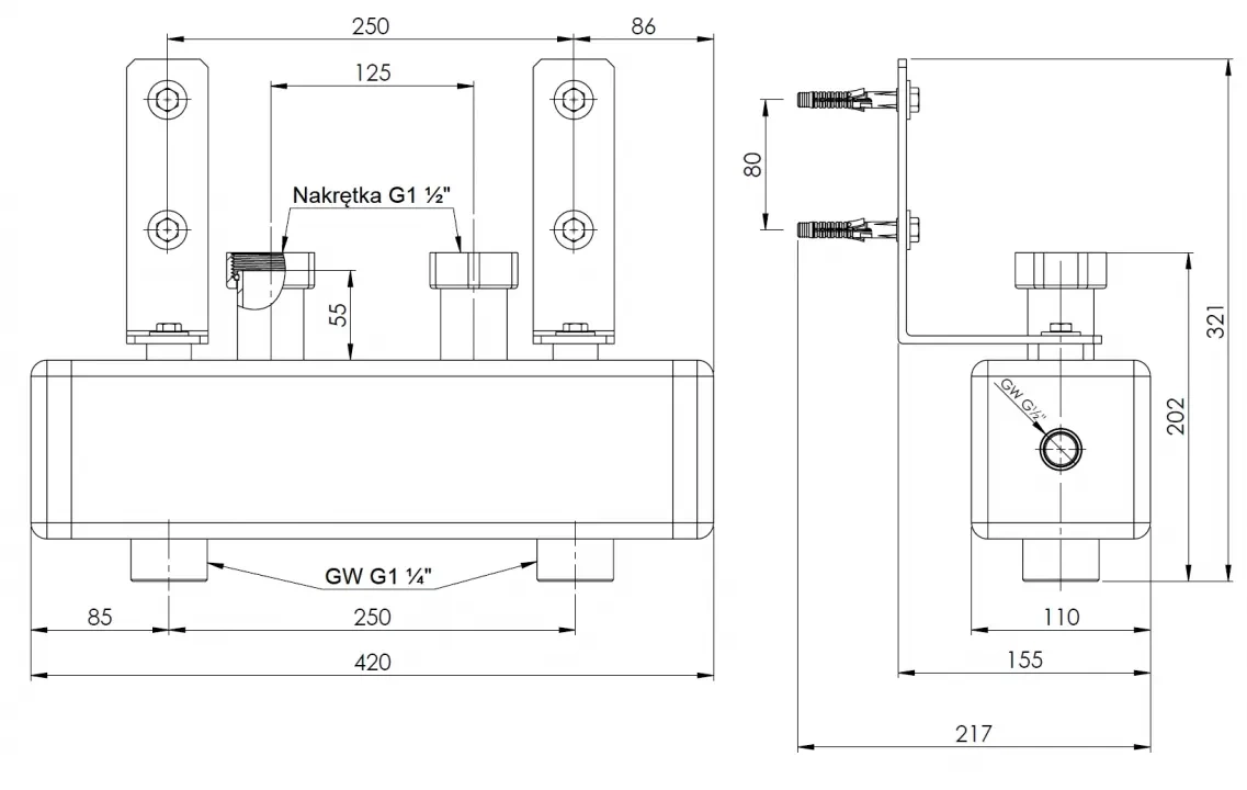 • Připojovací rozteč přizpůsobena pro rozdělovače KSV 125 do 70 kW a čerpací skupinu PrimoTherm