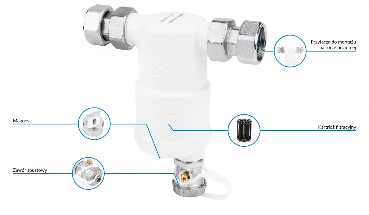 Kompaktní odlučovač nečistot FAR je instalován v systému ústředního vytápění. Používá se k odstranění pevných nečistot, které mohou poškodit součásti instalace.