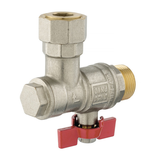 Kulový kohout rohový s filtrem, zpětný ventil, šroubovací šroubení, 3/4" motýlek, FERRO KFMFZZ2SGK