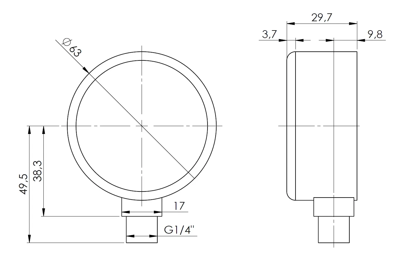Manometr topení HZ 63 Fi 63 mm 0÷4 bar G3/8" RAD class 2.5 Afriso 63910
