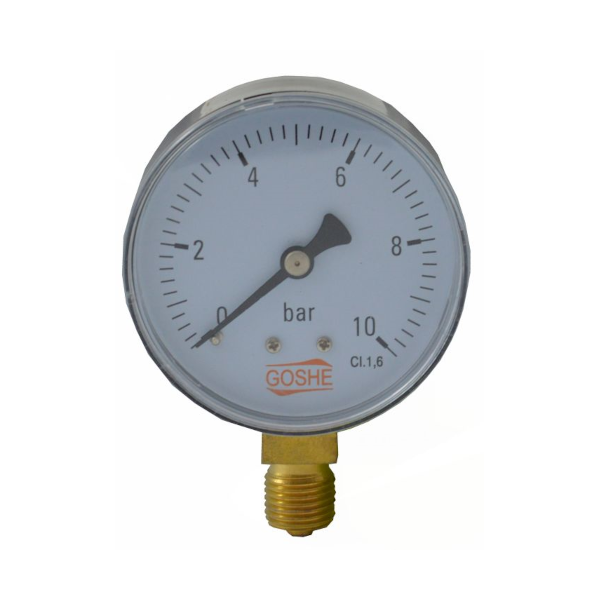 - GOSHE Radial Pressure Gauge 63 mm Rear Thread 1/4 je měřicí přístroj, který zajišťuje přesné měření tlaku ve vodních systémech a systémech ústředního vytápění. Odolný proti korozi, zaručuje trvanlivost a přesnost měření.