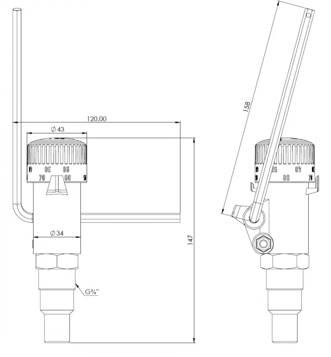 • Regulátor tahu FR1, 30÷90°C, G3/4": Pro kotle na tuhá paliva, Regulace vzduchu pro pec, Horizontální/Vertikální instalace, Max 115°C.