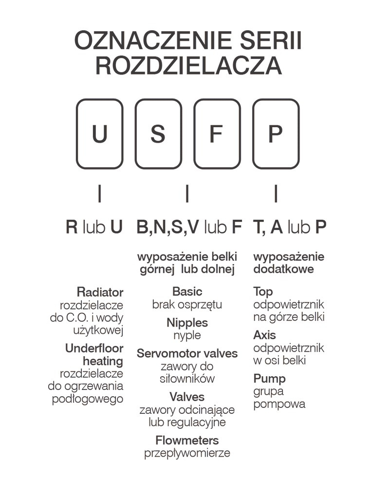 Abychom usnadnili identifikaci řady rozdělovačů InoxFlow, a tím i jejího účelu a vybavení, zavedli jsme systém značení písmeny.