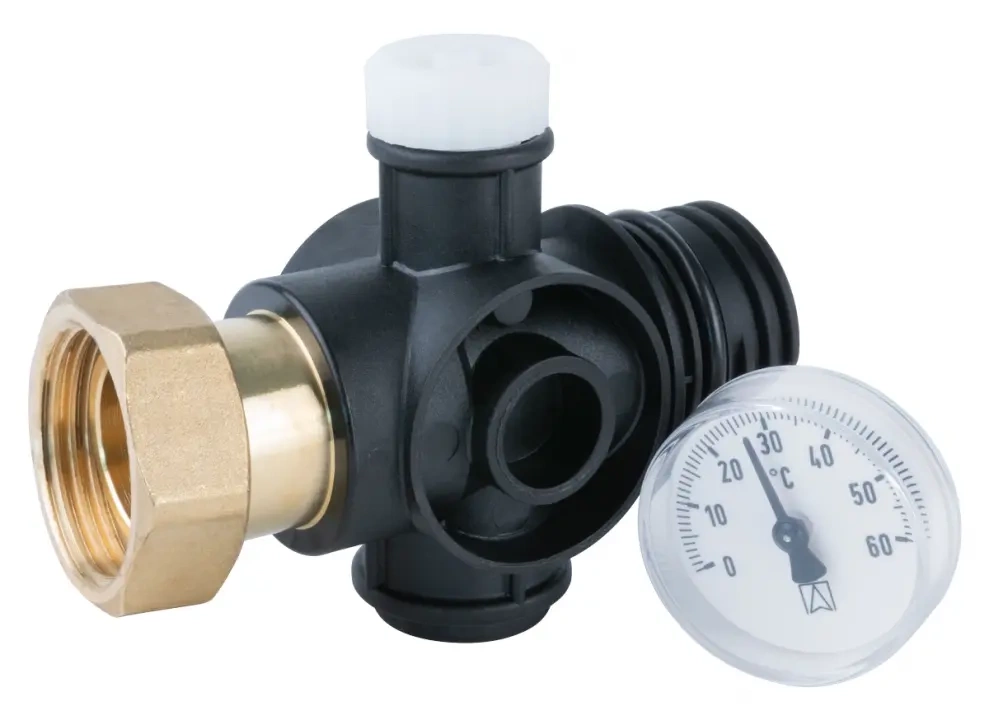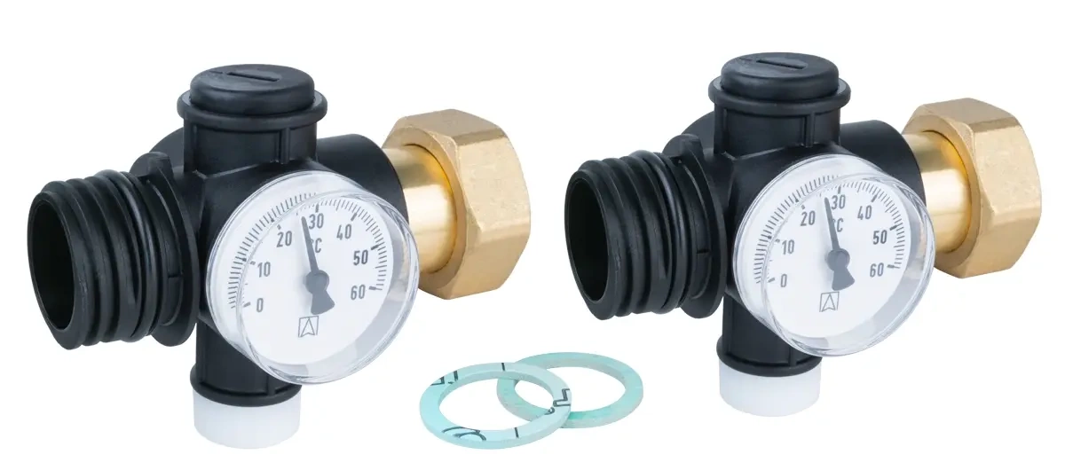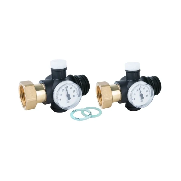Sada dvou přípojek s maticí G1" pro ProCalida EF1 K s teploměry a ručními odvzdušňovacími otvory