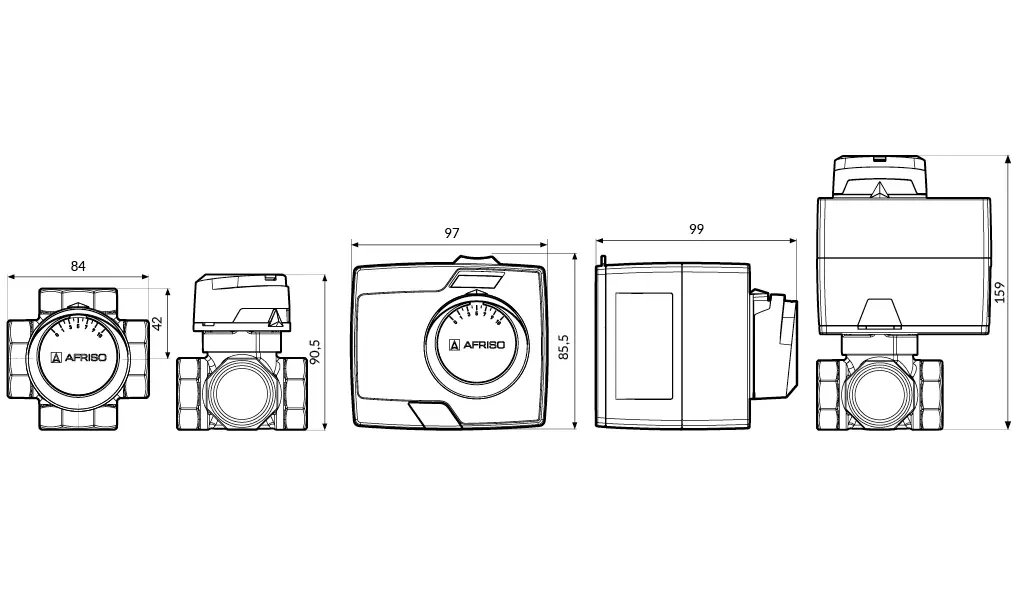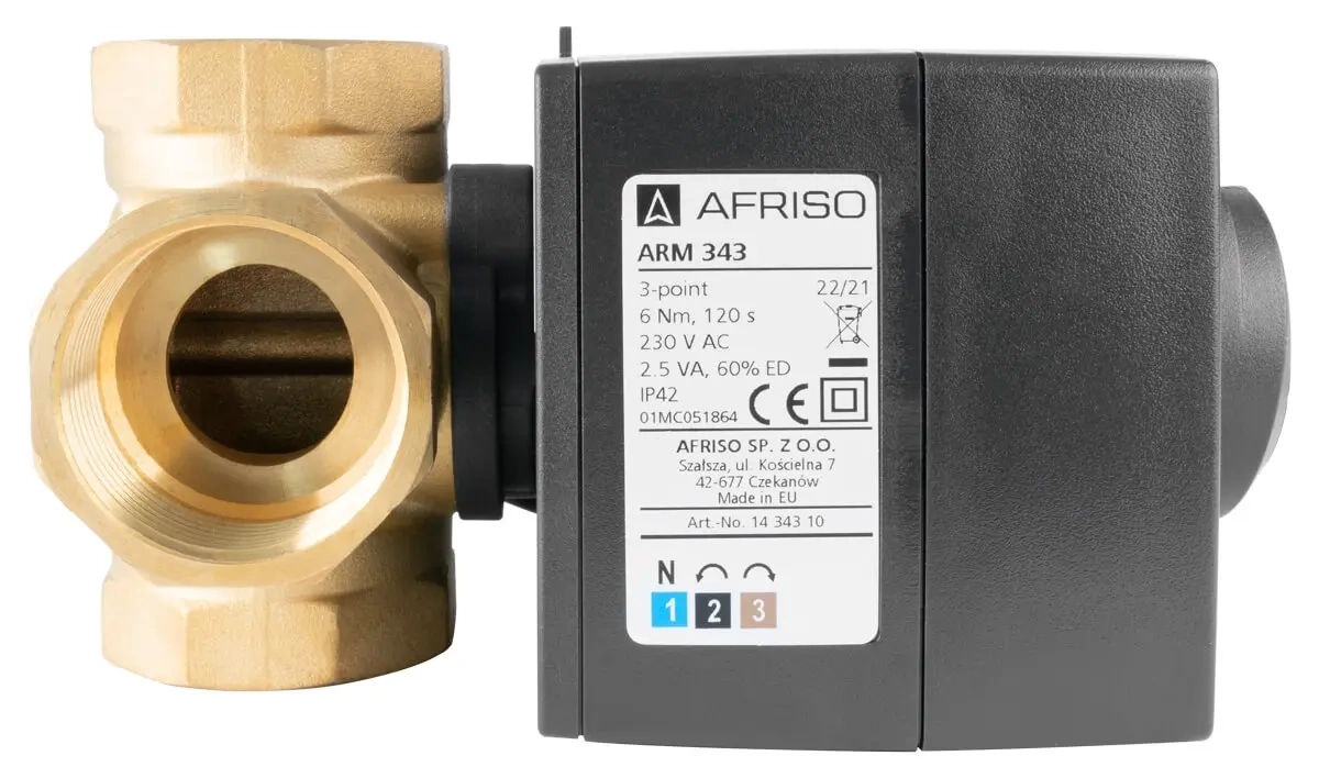 Sada regulace ProClick: 4cestný otočný směšovací ventil ARV 485 ProClick DN32 Rp1 1/4" Kvs 16 + elektrický pohon ARM 343 ProClick Afriso 1348544
