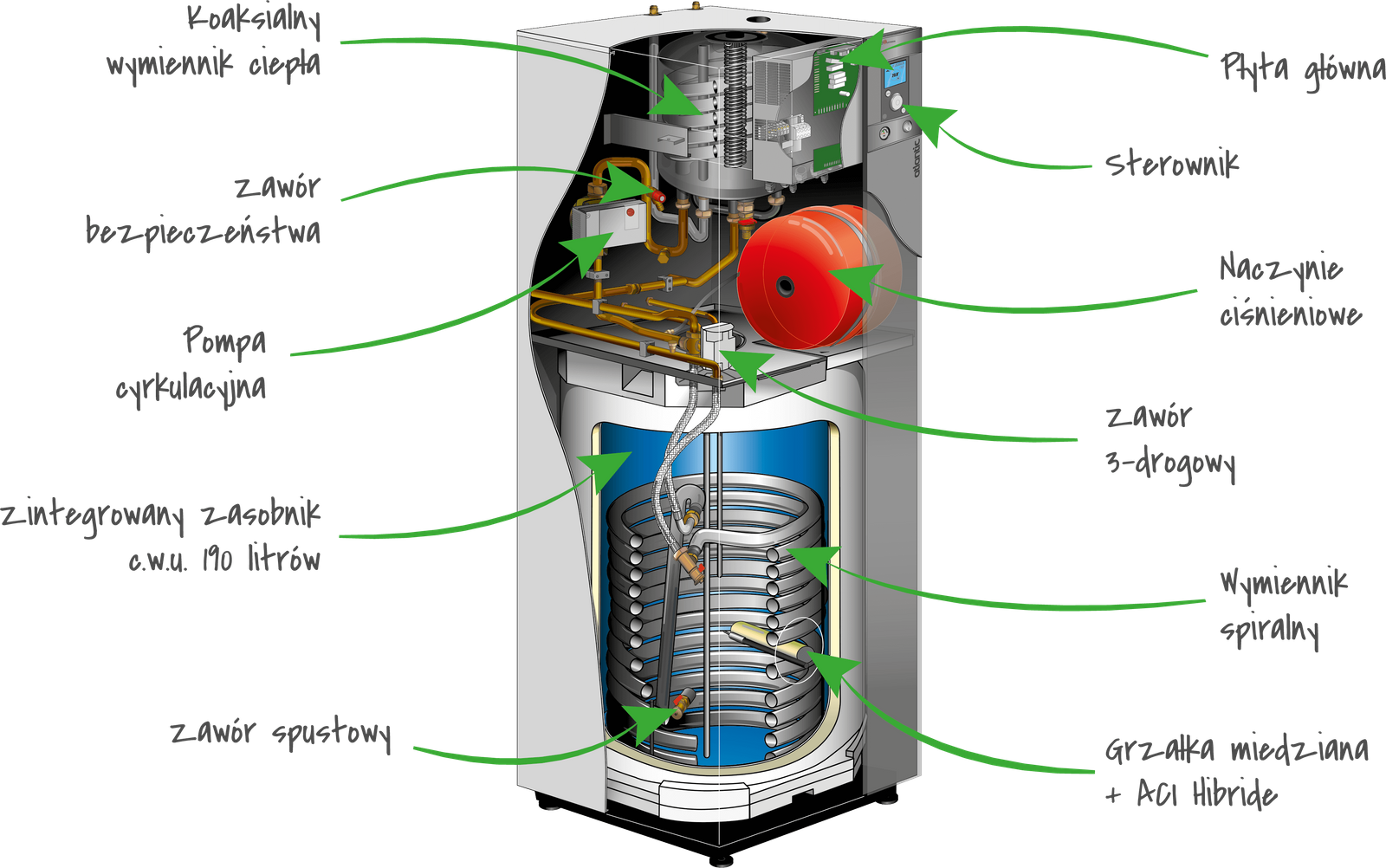 systém, který zaručuje optimální komfort používání vodní nádrže, díky specifické konstrukci výměníku a jeho umístění uvnitř zařízení zaručuje jeho vysokou účinnost