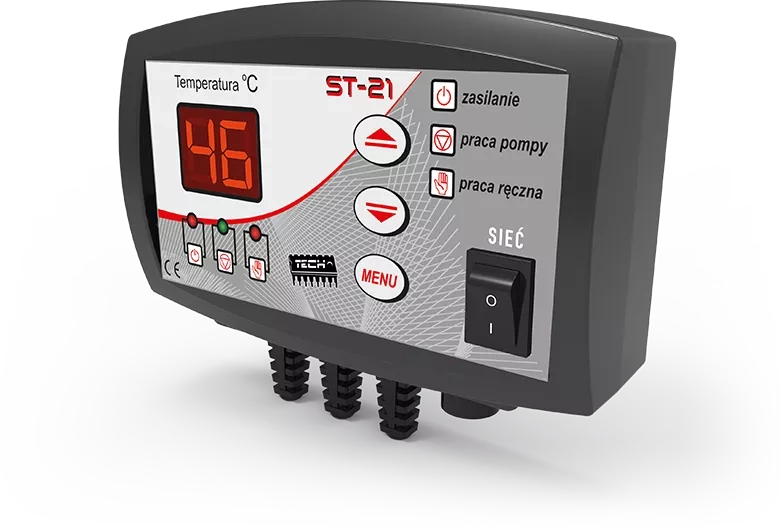 Regulátor ST-21 s LED displejem je určen k ovládání oběhového čerpadla vody ÚT. Úkolem regulátoru je zapnout čerpadlo při dosažení nastavené hodnoty a vypnout jej - pokud se kotel ochladí pod nastavenou hodnotu o nastavenou hodnotu hystereze.Princip činnosti