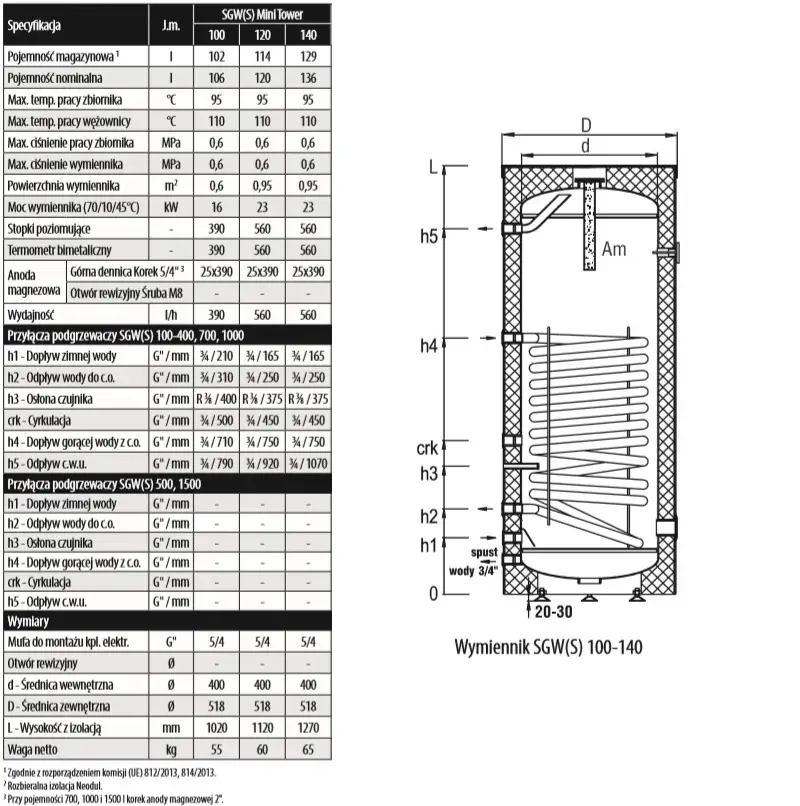 Teplovodní výměník se spirálovým hadem, stojatý - SGW(S)