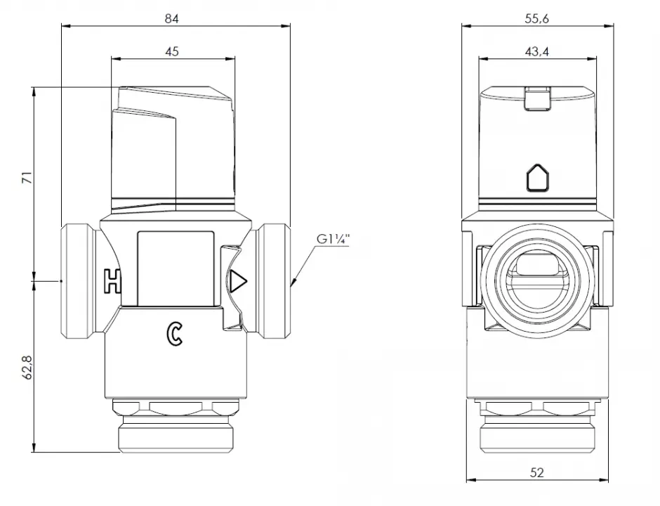 Tělo ventilu ATM je vyrobeno z mosazi. Uvnitř ventilu je termostatický směšovací prvek.Termostatické ventily ATM jsou vybaveny knoflíkem, který umožňuje nastavení teploty směšované vody v rozsahu 20 ÷ 43°C nebo 35 ÷ 60°C v závislosti na verzi ventilu.Technická data