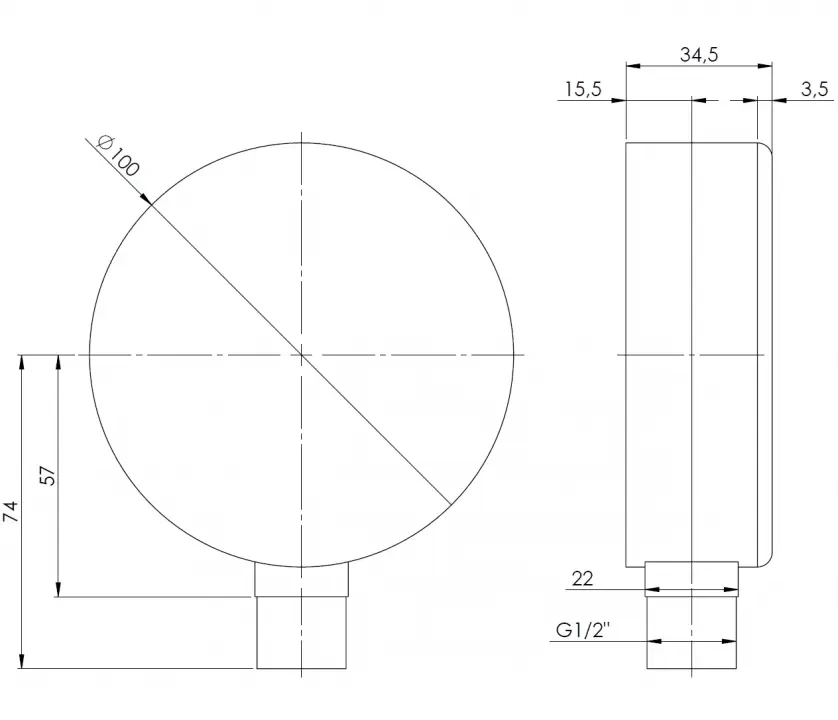 Topný manometr RF 100 Fi 100 mm 0÷10 bar G1/2" RAD class 2.5 Afriso 63614