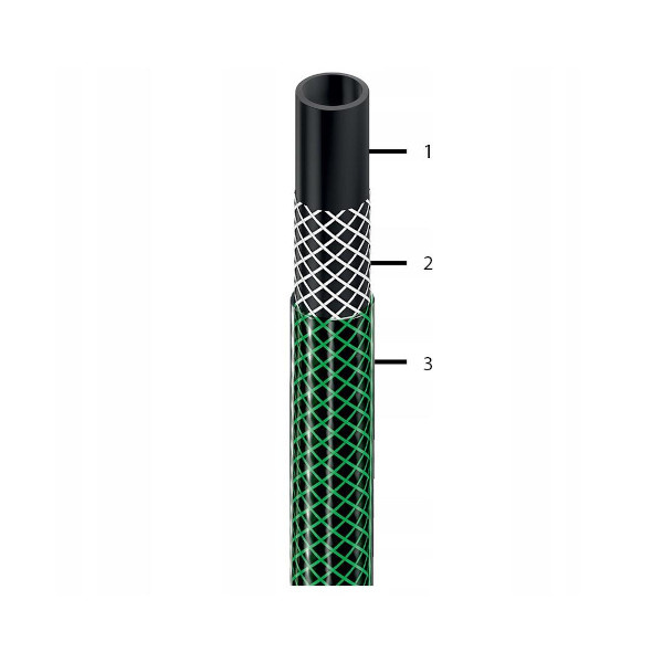 Vrstva I - vnitřní ochranná vrstva z černého PVC odolná proti UV záření a usazování řas v hadici